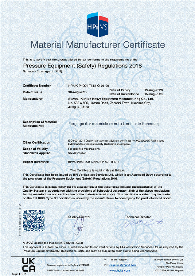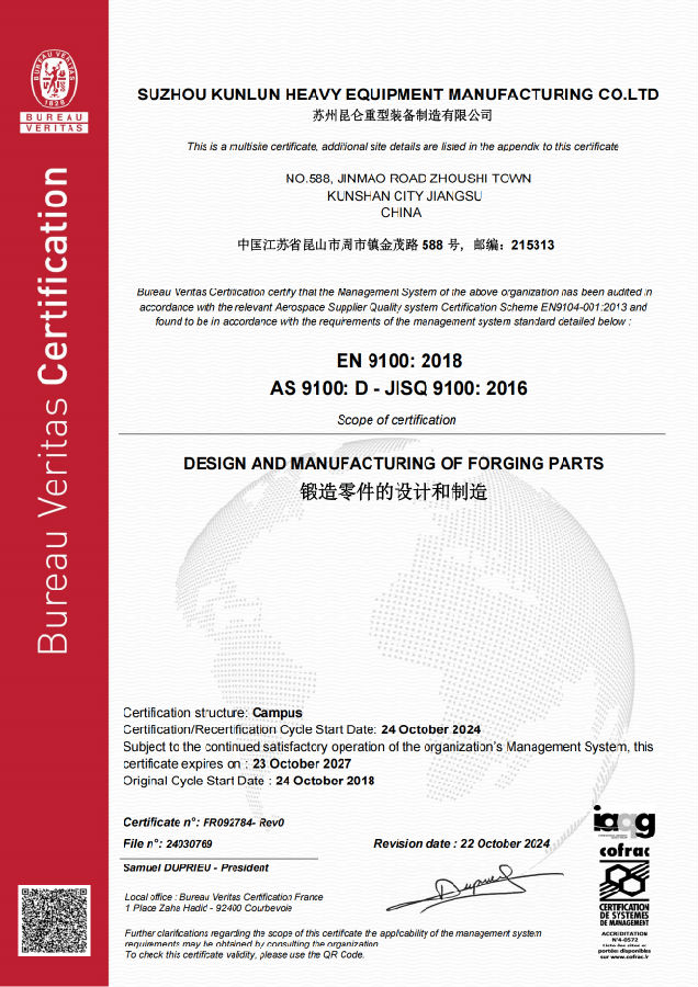 公司已建立ISO9001:2015質(zhì)量管理體系、CCS中國船級社質(zhì)量管理體系、CCS工廠認(rèn)證和AS9100D航空航天質(zhì)量管理體系,ISO14001環(huán)境管理體系和OHSAS18001職業(yè)健康安全管理體系,確保其在日常工作中有效運(yùn)行、保持并不斷改進(jìn)。