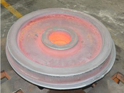 從動齒輪主要用于動車設(shè)備上,鍛件材料為18CrNiMo7-6,直徑Φ998mm,高度315mm,重量774kg。產(chǎn)品采用開式模鍛一火成型,能夠很好的提高材料的利用率,并且各項性能均達標(biāo)。