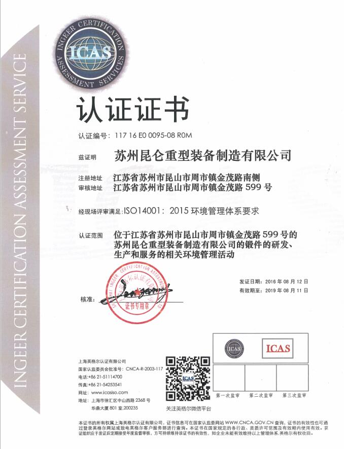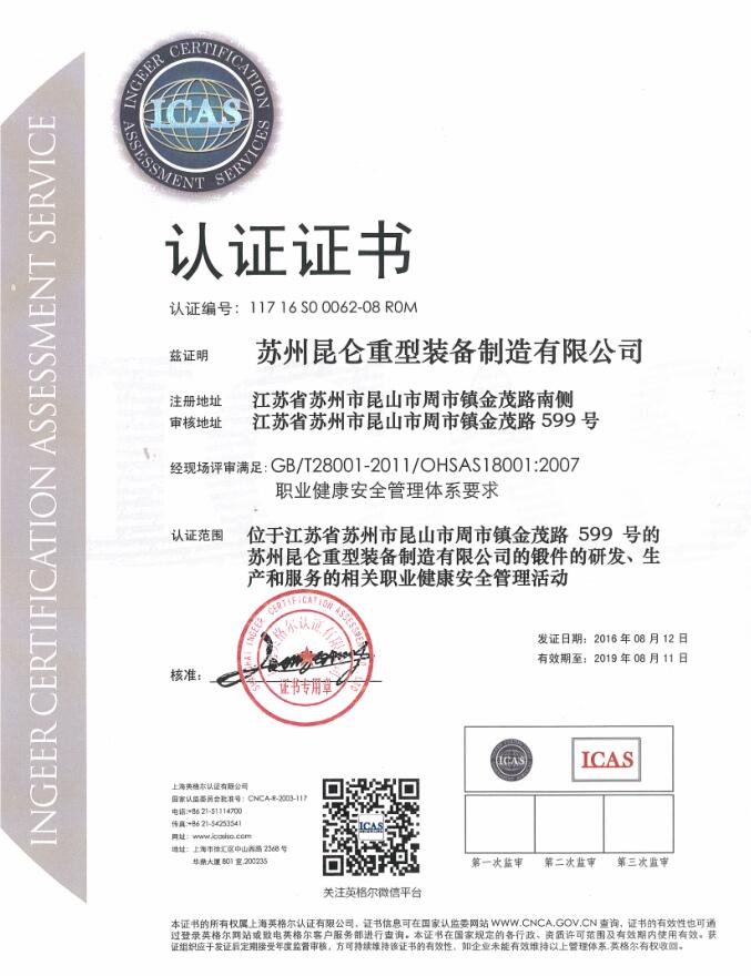 2016年7月,在公司各部門的共同努力下,通過了ISO14001環(huán)境管理體系和OHSAS18001職業(yè)健康安全管理體系的評審,并取得了頒發(fā)的兩體系認證證書。